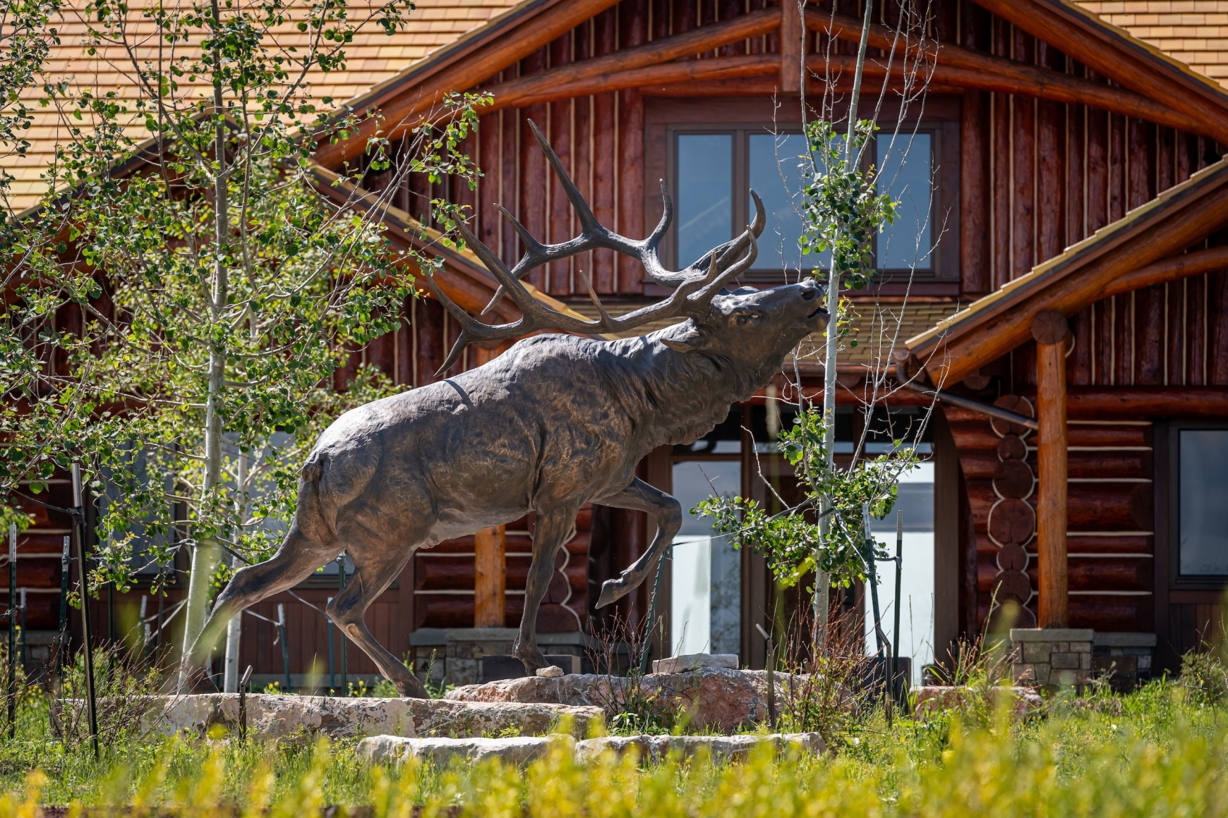 Bugling Elk, bronze, 120h x 108w x 60d in, 304.80h x 274.32w x 152.40d cm by Jocelyn Russell