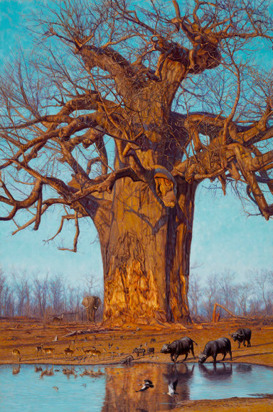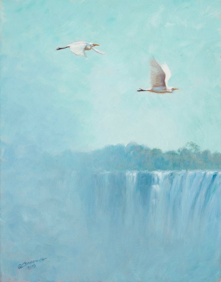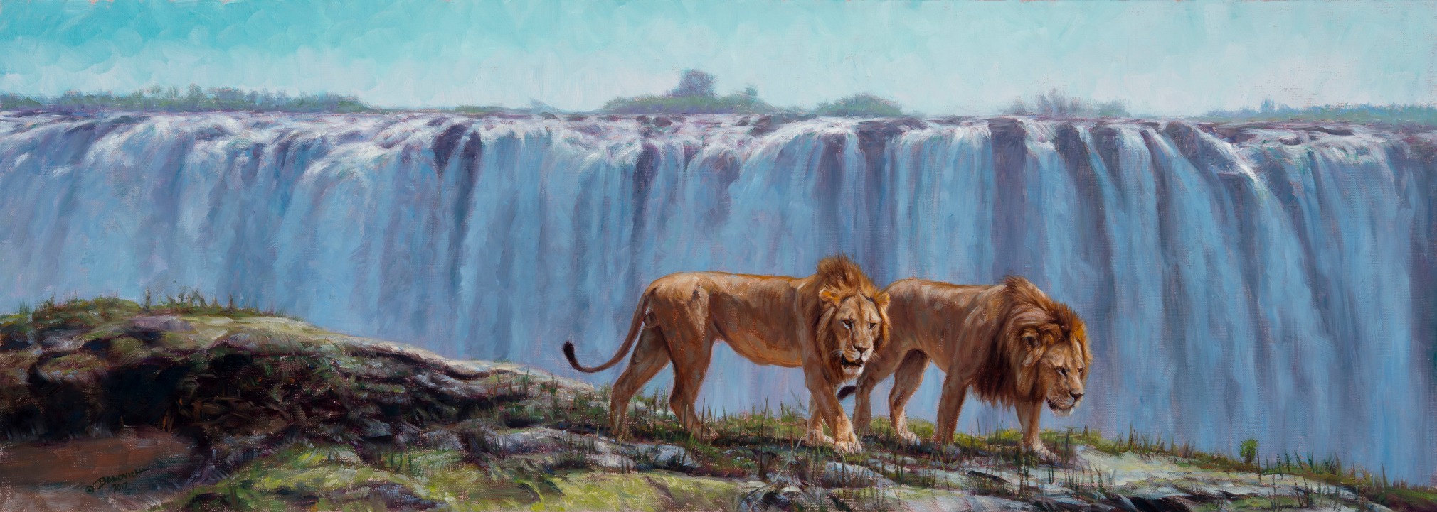 John Banovich will present his 2018 Original Paintings collection. The new original oil painting "On the Edge of the Mighty Victoria Falls", oil on belgian linen, 13 x 36 in, $25,000, will be available for sale during the live auction event on January 6, 2018.