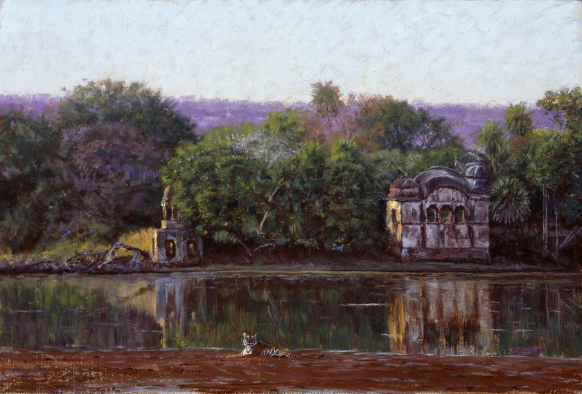 John Banovich spent February of 2002 traveling in India. His experiences in Bandhavgarh, Konar and Ranthambhore National Park is where he first encountered wild tigers. This life enhancing experience was the inspiration for the painting, Jewel of India. In an effort to support the dramatic decline of the wild tiger, Banovich has joined forces with the Wildlife Protection Society of India (WPSI). Founded in 1994 by its Executive Director, renowned tiger conservationist Belinda Wright, the Wildlife Protection Society works to help avert India's wildlife crisis by providing urgently needed support and information to combat the escalating illegal wildlife trade, particularly the illicit trade of tiger parts. It has now broadened its focus to deal with human-animal conflicts and provides support for research projects. An important element of the Society’s work is WPSI’s countrywide network of investigators. Developing information collected through this network, the WPSI team assists and liaises with Government enforcement authorities to bring about the arrest of offenders and seizure of wildlife products. A WPSI cell of expert lawyers supports the prosecution of important wildlife cases and reviews wildlife laws and campaigns for constructive amendments.