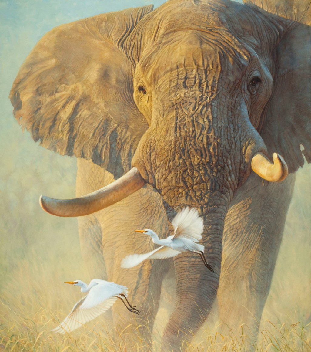 “Kigogo makes people challenge their preconceived ideas about wildlife art and contemporary city design, as well as about how much space can and cannot be taken by the art scene presented. To me, his frame is an opening in the wall into real space, his space, and he takes me all into his moment, his grass, and his kingdom.” – Jeannette Malone