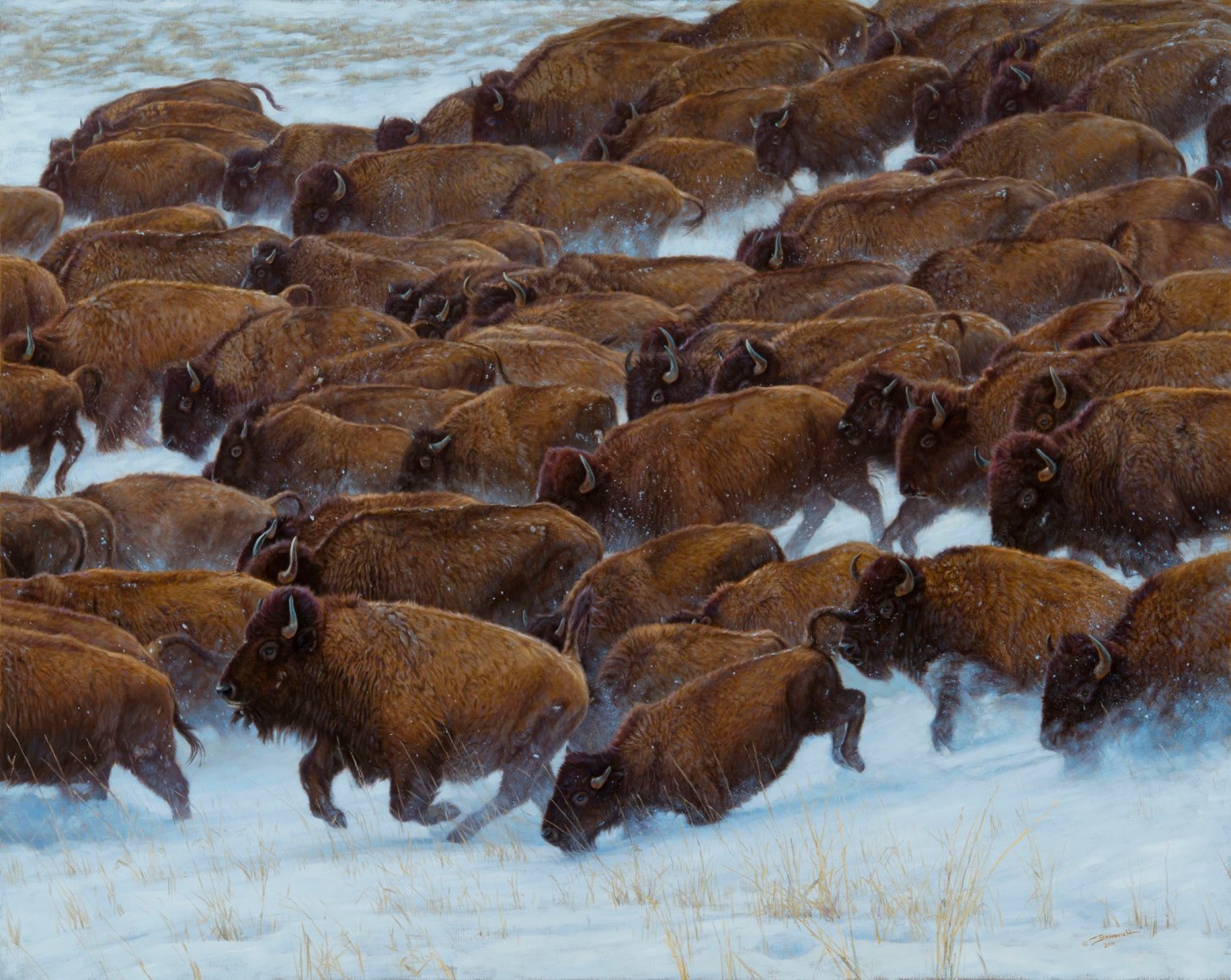 The Jackson Hole Art Auction is an annual live auction that has quickly become one of the premier western art events in the country, defined by the high standard of works offered by both contemporary western artists and historical masters. Featuring"Buffalo Run"48" x 60" Oil on Belgian Linen - John Banovich 2014 - Valued $60,000 - $90,000